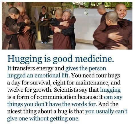 CAUTION: MAY BE ADDICTIVE….but overdose is impossible. A 20 second hug releases the bonding hormone and neurotransmitter oxytocin, which is nature’s own anti-depressant and anti-anxiety substance. 20 seconds allows your hearts to connect and transfer healing energy between both individuals.